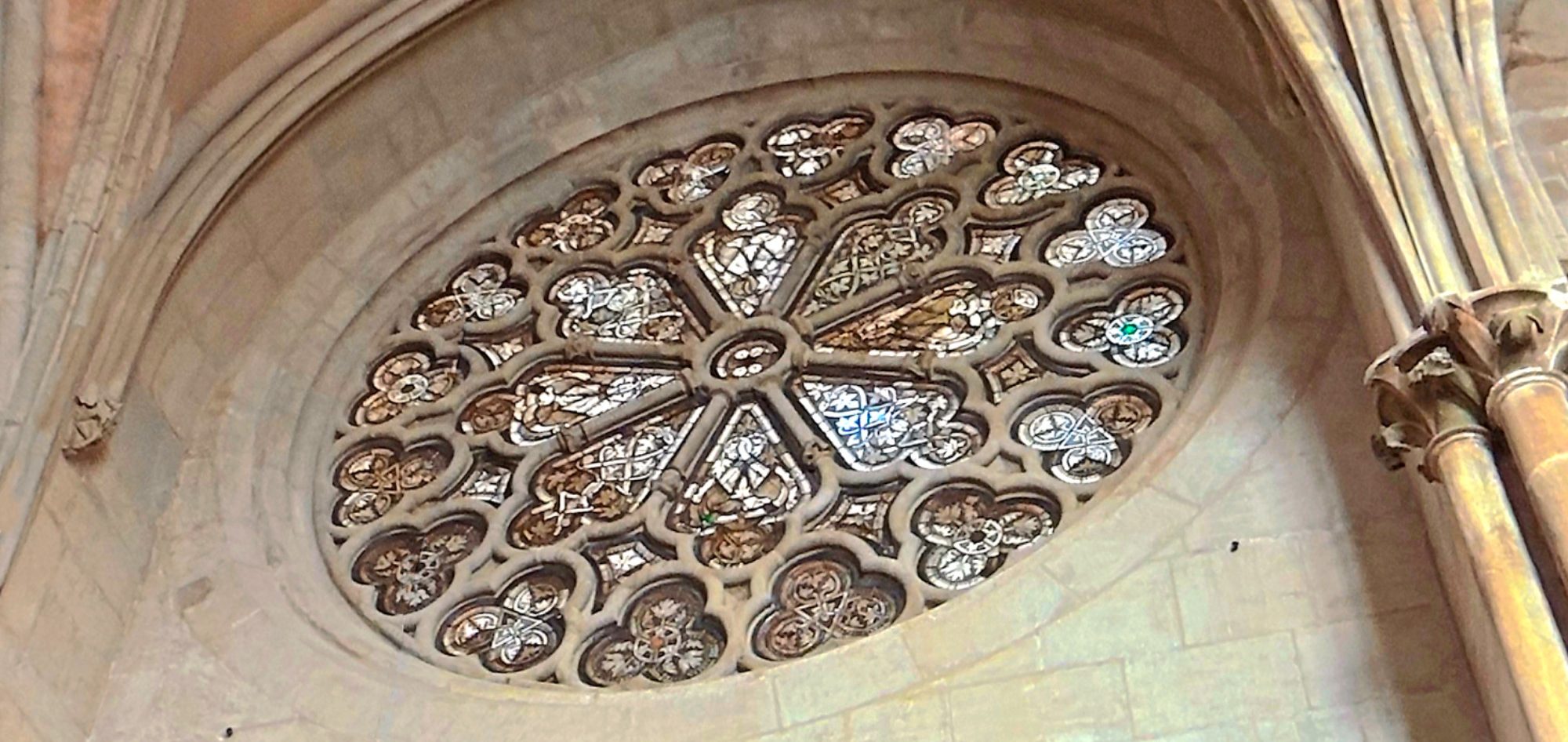 Die 33 Glaselemente sind in Grisaille-Maltechnik ausgeführt. Hierbei werden vorwiegend Schwarz, Weiss und Grautöne verwendet um Plastizität zu erzeugen. Die Malerei ist sehr hochwertig und detailreich ausgeführt, bei der hauptsächlich florale Motive und Fabelwesen dominieren. Dieses einzigartige Kunstwerk aus dem 13.Jahrhundert ist zu 70 % im Original erhalten. Die restlichen Elemente wurden in den 70er Jahren durch Glasrestauratoren aus Erfurt ergänzt. Im Jahr 2013 war es dann soweit. Nach jahrzentelanger Einlagerung konnten die Glaselemente gereinigt, restauriert und an ursprünglicher Stelle wieder eingebaut werden.